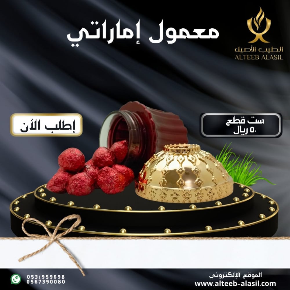 الوصف : معمول بخور إماراتي ذو فوحان منتشر و ثبات دائم هو تحفة بخورية تأتي من أعماق الثقافة الإماراتية لإضافة لمسة من الفخامة والتألق إلى حياتك اليومية. هذا البخور الرائع يجمع بين رائحة البخور الفاخرة والزهور الشرقية الرقيقة، مما يمنحك تجربة فريدة تأسر الحواس.